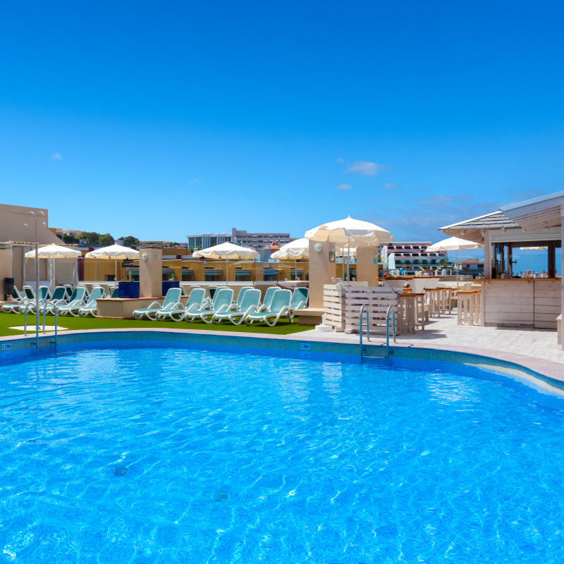 Votre apparthotel L’Apparthotel Los Dragos del Sur surplombe la plage de la Arena et dispose de 79 appartements avec cuisine répartis sur 8 étages. La plage se situe à 350m. C’est le lieu de résidence parfait pour partir à la découverte de l’île. Il propose : réception 24h/24, wifi, service de nettoyage dans les appartements, location de voitures*, blanchisserie/laverie*, service médical*.À votre disposition : 1 piscine (chauffée en hiver), solarium avec transats et parasols, salle de sport, billard*, massages*.*Avec supplémentDurant votre séjour, vous serez hébergé en formule petit déjeuner sous forme de buffet servi au restaurant principal. Votre appartement Vous séjournerez en appartement équipé, sa capacité maximale est de 3 adultes ou de 2 adultes + 2 enfants. Tous les appartements sont équipés de : terrasse ou balcon, climatisation, téléphone*, télévision, cuisine équipée, machine à café, réfrigérateur, coffre-fort (payant), salle de bains équipée, wifi.*Avec supplément Locate Situation À 300 m du centre-ville de Puerto de Santiago et 350 m de la plage. Les falaises Los Gigantes se trouvent à 2 km et le parc national del Teide à 10 km environ. L’aéroport de Tenerife Sud est à 40 km.