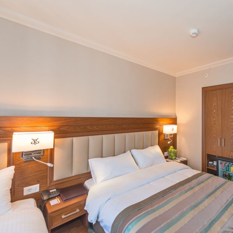 Votre hôtel L’hôtel Bekdas Deluxe & Spa 4* se situe au centre de la ville d’Istanbul, dans le quartier du grand bazar. Vous trouverez à proximité de l’établissement de nombreux restaurants, boutiques ainsi que de célèbres monuments. Doté d’un restaurant sur le toit offrant une vue imprenable sur la mer de Marmara, l’hôtel Bekdas dispose d’environ 97 chambres, à la décoration contemporaine, rénovées en 2013. À votre disposition : service d’étage*, parking, piscine intérieure, conciergerie, location de voiture, réception 24h/24h, service de change, boutique de souvenirs*, blanchisserie*, fax/photocopie*, centre de spa**, et accès internet gratuit dans le hall et dans les chambres.*Avec supplément**Le spa (sauna, hammam, bain turc, centre de fitness) est fermé jusqu’à nouvel ordre selon la décision gouvernementale.Dans le cadre de cette offre, vous séjournerez en formule petit déjeuner servi dans la grande salle à manger et dans le restaurant principal.Vous pourrez également savourer de délicieux plats ottomans et français, accompagnés de vins exquis provenant de la collection de l’hôtel, avec supplément, selon vos envies.Vous disposez également d’un bar pour vous rafraichir. Votre chambre Vous séjournerez en chambre standard de 15 à 20 m2 avec 1 grand lit ou 2 lits simples et 1 lit d’appoint, si vous êtes 3 (capacité maximale des chambres). Les lits bébés sont fournis sur demande et sous réserve de disponibilités. Toutes les chambres sont équipées de : climatisation, salle de bains avec baignoire et sèche-cheveux, wifi, mini-bar*, coffre-fort*, télévision et téléphone avec ligne directe*.*Avec supplémentDans le cadre d'une chambre à usage triple ou quadruple, vous serez logé en chambre double équipée d'un lit double (ou de 2 lits twins) et de 1 ou 2 lits d'appoint (sofa, canapé lit).L’hôtel dispose d’une chambre PMR (sur demande et selon disponibilités). Pack excursion Ce pack est à prendre au moment de votre réservation."Découverte d'Istanbul" - (60€/personne)Que ce soit votre première visite dans la capitale ottomane ou que vous ayez visité Istanbul plusieurs fois, nous vous proposons de découvrir la ville sous un nouveau jour avec 2 demi-journées de visite, accompagné d’un guide francophone.La demi-journée "Vieille ville" :Visite de la mosquée BeyazitPassage dans le quartier bouquinisteVisite du grand bazarVisite de la mosquée SuleymaniyeLa demi-journée "Bosphore" : Visite du bazar égyptien - Marché aux épices Croisière sur le BosphoreA noter : Les déjeuners ne sont pas inclus et les horaires des visites vous seront communiqués à votre arrivée. Les deux demi-journées peuvent avoir lieu le même jour. Locate Situation Le grand bazar se trouve à moins de 5 minutes à pied. Les transports en commun, comme le bus et le tram, se trouvent à environ 150 m de l’hôtel. L’aéroport international d’Istanbul se situe à 50 km et celui de Sabiha Gokçen à 45 km.
