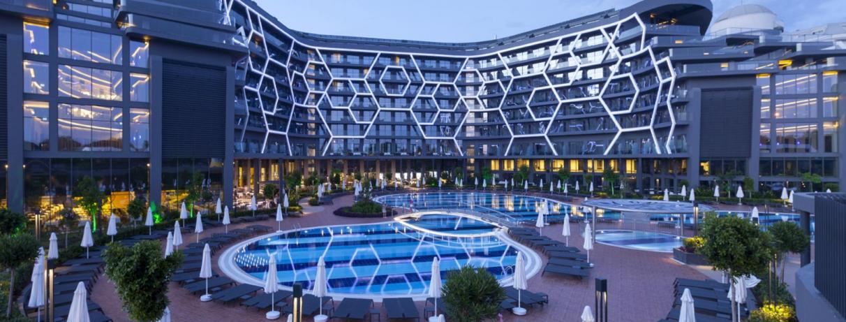 Votre hôtel Le Bosphorus Sorgun 5*, dans la province d’Antalya, est un hôtel moderne et neuf. Idéalement situé, à 7 km de la ville antique de Side et du centre de Manavgat, il a ouvert ses portes en 2017 et propose 455 chambres. Profitez d’un cadre exceptionnel à proximité de la plage ou au bord de la piscine. Admirez également les jeux de lumière sur la façade qui vous plongent dans l’ambiance atypique de cet hôtel. À votre disposition : réception 24h/24, coiffeur*, blanchisserie*, médecin*, location de voitures*, boutiques*, room service*, serviettes de plage et transats et parasols, parking, wifi, espace TV (au lobby seulement), centre de spa*, sauna.*Avec supplément Votre chambre Vous serez logé dans une chambre confortable standard de 30 à 33 m², pouvant accueillir jusqu’à 3 personnes. Dans le cas d’une chambre à usage triple ou quadruple, l’hôtel met à votre disposition une chambre double équipée de 1 lit double ou de 2 lits twin et de 1 lit d’appoint (sofa, canapé-lit). Toutes les chambres sont équipées de : salle de bains avec douche, sèche-cheveux, balcon, climatisation centralisée, mini-bar (eau et boissons non alcoolisées renouvelées chaque jour), ligne téléphonique directe*, coffre-fort, wifi et télévision LCD par satellite.*Avec supplémentL’hôtel dispose de 3 chambres PMR de type standard (sur demande et selon disponibilités). Restaurants et bars Pendant toute la durée de votre séjour, vous bénéficierez de la formule tout inclus, qui vous offre aussi bien les repas, les boissons locales alcoolisées ou non et les snacks. Les repas seront servis sous forme de buffet, au restaurant principal de l’hôtel qui vous permettra de déguster des spécialités internationales mais également de découvrir la gastronomie locale. Vous pouvez également profiter des snacks en journée.Votre formule tout inclus comprend :Petit déjeuner anticipé : de 2h00 à 6h00Petit déjeuner : de 7h00 à 10h00Petit déjeuner tardif : de 10h00 à 11h00Snack : de 12h00 à 16h00Gözleme (crêpes turques) : de 12h00 à 15h45Déjeuner : de 12h30 à 14h30Churros, gaufres : de 15h00 à 17h00Hot-dog et pommes de terre au four : de 16h00 à 17h00Pâtisseries : de 10h00 à 21h00Glaces : de 15h00 à 17h00Dîner : de 19h00 à 21h00Souper de nuit : de 22h00 à 2h00Vous aurez à votre disposition 3 restaurants à la carte de 19h00 à 21h00 (selon les disponibilités, sur réservation entre 10h00 et 12h00, un repas vous est offert pour un séjour de minimum 7 nuits, les enfants de moins de 12 ans ne sont pas acceptés) :Turquoise restaurant (cuisine méditerranéenne)Grill restaurant (cuisine turque)Fish restaurant (poissons)Vous aurez également à votre disposition une multitude de bars :Lobby bar : de 10h00 à minuit Cocktails Bar : de 10h00 à minuitMojito Bar : de 10h00 à 16h00Pool Bar: de 10h00 à 17h00Beach Bar: de 10h00 à 17h00Cafe Bosphorus: de 10h00 à minuitDown Lobby Bar: 24h/24Les horaires sont donnés à titre indicatif et peuvent être soumis à modification sans préavis. Les jus de fruits frais, certaines boissons importées, certains cocktails mais aussi les boissons en bouteille ne sont pas compris. Certains alcools importés et locaux sont gratuits de 10h00 à minuit. Une tenue correcte est exigée dans le restaurant et les shorts sont proscrits au dîner. Vos activités et loisirs Venez profiter des activités proposées, parmi lesquelles : plage privée, 2 piscines extérieures dont une pour enfants et avec toboggans, piscine intérieure, centre de fitness, beach-volley, tennis de table, stretching, fléchettes, mini-golf, yoga, mini bowling, beach football, mini-bowling, water basket, salle de jeux, billard et activités nautiques*, musique live, organisation de party (mousse, piscine, surprise), discothèque.Vous aurez à votre disposition : sauna (de 9h00 à 18h30, sur réservation), bain turc (de 9h00 à 18h30, sur réservation), centre de spa*, massages* et soins*.Pour les enfants : une aire de jeux et un mini-club international est disponible pour les enfants de 4 à 12 ans. Des activités adaptées à leur âge leur seront proposées.*Avec supplémentÀ noter qu’au vu de la météo, certains équipements extérieurs peuvent ne pas être praticables et certaines activités annulées. Les activités, les sports et les soirées sont encadrés par une équipe d’animation internationale. Locate Situation L’hôtel se situe à 7 km du centre-ville de Side et de Manavgat, à 80 km du centre d’Antalya et à 72 km de l’aéroport international d’Antalya. Le parcours de golf de Belek se situe à 45 minutes de l’hôtel et la plage à 130 m (transferts entre l’hôtel et la plage disponibles).