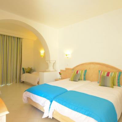 Votre hôtel L’hôtel bénéficie d’un parc de 18 hectares avec un emplacement de rêve face à la méditerranée. C’est un village de vacances qui comprend au total 486 bungalows. Vous serez séduit par ce club qui réunit toutes les conditions pour des vacances réussies. À disposition : réception 24h/24, wifi gratuit, service de change, parking, boutiques*, blanchisserie*, service médical* (sur demande), location de voitures*, photographe*, centre de beauté*, coiffeur*, chaises longues, matelas, parasols, serviettes* (sous caution).* Avec supplément Votre chambre Vous serez logés en chambre standard, elle peut accueillir jusqu’à 2 personnes. Toutes les chambres sont équipées de : balcon ou terrasse, climatisation (selon conditions climatiques), wifi, télévision, coffre-fort, téléphone, minibar*, salle de bain équipée avec baignoire ou douche et sèche-cheveux, lit bébé (sur demande). Moyennant un supplément tarifaire, vous pourrez séjourner en chambre standard vue mer (2 personnes maximum), en chambre triple (2 adultes + 1 enfant) ou en chambre familiale (2 adultes + 2 enfants). Restaurants et bars Séjournez l’esprit libre avec la formule « tout inclus », qui inclut aussi bien les repas servis sous forme de buffet au restaurant principal de l’hôtel « Meridian », où vous découvrirez des saveurs locales et internationales, ainsi que les boissons locales alcoolisées ou non et les snacks.La formule comprend :Petit déjeunerDéjeunerDînerSnacksLe restaurant à la carte «Blue & Blue » : propose une cuisine méditerranéenne, sur réservation et disponible 6 soirées par semainePasta Bar : vous proposera un large choix de pâtesLe restaurant « Sofra » : propose des spécialités tunisiennes dans un joli décor de mosaïques bleues, disponible 6 soirées par semaineLe restaurant à la carte « El Pescado » : propose une cuisine à base de poissons, disponible 6 soirées par semaineLe snack /bar « L’Express » : propose repas légers, snacks et boissons, ouvert 24h/24Krick Krack : Déjeuner et dîner pour enfants, sur réservationChurrascaria* : Ce restaurant propose des spécialités brésiliennes et est situé au bord de la plage. Disponible 6 jours par semaine, selon la température extérieure et aux conditions climatique.L’Express : Différents choix de Snacks et des boisons alcoolisés et non alcoolisés, Ouvert 24h/24h (repas légers–snacks et boissons).*en supplément Pour vous rafraîchir, plusieurs bars seront à votre disposition :Lobby BarBar PiscineAquabarCes bars vous proposeront un choix multiple de boissons non alcoolisées, café/thé, jus, cocktail, boissons alcoolisées locales, bière pression et vins de table. Café maure* : C’est l’endroit idéal pour se détendre dans une ambiance de café traditionnel. Là où vous attend le thé à la menthe, narguilé et différent autre produits avec supplément.* Avec supplément Les horaires sont donnés à titre indicatif et peuvent être soumis à modification sans préavis de la part de l’hôtelier et ce, sans que la responsabilité de Mondial Tourisme ne soit engagée. Les jus de fruits frais, les boissons importées, les cocktails mais aussi les boissons en bouteille et canette ne sont pas compris. Vos activités et loisirs Une équipe de professionnels vous proposera une animation en journée avec des activités sportives et ludiques, également une animation en soirée. À votre disposition : 3 piscines extérieures (avec chaises longues, matelas, parasols et serviettes avec caution), piscine couverte (fermée de juillet à septembre), bain à remous, tennis (cours et éclairage payants), tennis de table, badminton, volleyball, beach-foot, basketball, beach-volley, baby-foot, fléchettes, frisbee, water-ball, compétitions sportives, planche à voile*, sports nautiques*, fitness : aérobic, step, danse aérobic, corde à sauter, jogging matinale, marche matinale…Faîtes le plein d’aventures aquatiques en découvrant l’aqua park de l’hôtel. C’est l’endroit idéal pour vivre une expérience en famille inoubliable dans une ambiance agréable.Vous pourrez participer aux « Soirées One adultes » : différents jeux de groupes, jeux de familles, compétitions (femmes, hommes, familles) jeux d’esprit (backgammon, échecs), pétanque… Le centre de spa* de l’hôtel propose une large gamme de soins relaxants réalisés par une équipe de professionnels sélectionnée pour répondre à vos désirs (hammam, bain à remous, solarium, massages).* Avec supplémentPour les enfants Vos enfants trouveront leur bonheur aux 3 mini-clubs proposant des activités et des jeux adaptés à leur âge (jeux de groupe, compétitions sportives, jeux de société, cinéma). One Kids pour les 4-7 ans, One Maxi pour les 8-12 ans et One Adolescents pour les 13-17 ans. Ouvert 6 jours/semaine de 09h30 à 17h.Certaines activités ne se dérouleront que s’il y a assez de participants. Pendant les périodes de saison basse, les activités peuvent être limitées selon les conditions météorologiques. Locate Situation Le One Resort Aqua Park & Apa 4* est situé directement en bordure de mer, sur la route qui mène à l’aéroport de Monastir, tout proche du parcours de golf « Flamingo ». À seulement 10 km environ de la ville animée de Sousse et à 15 km du centre de Monastir. L’aéroport de Monastir est à 5 km et celui de Tunis à 160 km (environ 2h15 de transfert en cas d’arrivée/départ sur Tunis).