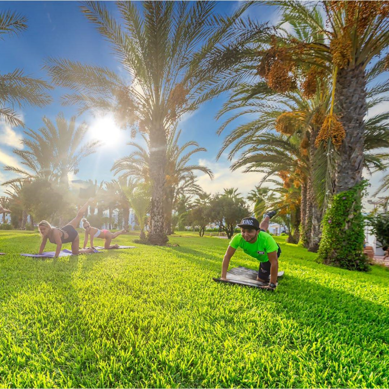 Votre hôtel Au cœur d’une palmeraie de 7 hectares, le Club Palm Azur dispose de 391 chambres. Que vous soyez en famille, en couple ou avec des amis, vous pouvez profiter des multiples activités qui vous seront proposées. À votre disposition : réception 24h/24, salon de coiffure*, boutiques*, blanchisserie*, wifi gratuit dans tout l’établissement, service de change, location de vélo*, salon de beauté*, Chaises longues, parasols et serviettes de bain gratuits (dépôt requis) à la piscine, baby-sitting* sur demande.* Avec supplément Votre chambre Pour un séjour agréable, vous serez logé dans une chambre standard spacieuse disposant d’un balcon ou d’une terrasse et pouvant accueillir jusqu’à 3 personnes. Toutes les chambres sont équipées de : climatisation/chauffage, télévision par satellite, téléphone*, mini-frigo, coffre-fort, wifi, salle de bain avec baignoire ou douche et sèche-cheveux.Moyennant un supplément, vous pourrez séjourner en chambre standard vue mer, pouvant accueillir 3 personnes maximum.Dans le cas d'une chambre à usage triple, l'hôtel met à disposition des clients une chambre double équipée d'un lit double (ou de 2 lits twins) et d’un lit d'appoint (sofa, canapé lit).* Avec supplément Restaurants et bars Séjournez l’esprit libre avec la formule « Tout Inclus ». Les repas sont servis sous forme de buffet variés « au Carthage », restaurant principal de l’hôtel avec terrasse où vous seront proposés des spécialités locales mais également internationales.Votre formule tout inclus comprend : Petit déjeuner completDéjeuner Dîner Café et petits gâteaux Afin de varier les plaisirs, 3 autres restaurants à la carte* seront également à votre disposition :« Dolce Vita », restaurant italien : ouvert du 15/06 au 15/09, avec réservation au préalable« Sidi Bou Said », restaurant tunisien : ouvert du 01/05 au 31/10, avec réservation au préalable« La Palmeraie », restaurant/snack sur la plage : ouvert en été Pour vous désaltérer, des boissons locales non alcoolisées et alcoolisées vous seront proposées dans les différents bars et restaurants de l’hôtel.Lobby BarBar Salon « Rêve »Bar de la piscine « Oasis » (ouvert en saison)* Avec supplémentLes horaires sont donnés à titre indicatif et peuvent être soumis à modification sans préavis de la part de l’hôtelier et ce, sans que la responsabilité de Mondial Tourisme en soit engagée. Les jus de fruits frais, les boissons importées, les cocktails mais aussi les boissons en bouteille et canette ne sont pas compris. L’ouverture des points de vente extérieurs est soumise aux conditions climatiques. Vos activités et loisirs Une équipe de professionnels vous proposera une animation en journée avec des activités sportives et ludiques et des spectacles en soirée. À votre disposition : 2 piscines extérieures, 1 parc aquatique avec 5 toboggans, 1 piscine extérieure pour enfants, 1 piscine intérieure chauffée en hiver, tennis de table, gymnastique, salle de fitness, beach-volley, mini-golf, terrain omnisports, 3 courts de tennis, cours de tennis sur réservation et avec supplément, billard*, 1 initiation à la plongée en piscine, canoë, planche à voile, bateau à pédales, catamaran (de mai à octobre), sports nautiques* (de mai à octobre) *, centre de spa*, plongée*. À proximité de l’hôtel et avec supplément : équitation*, golf 27 trous*, location de bicyclettes*. L’établissement dispose d’un centre de spa* qui vous proposera : sauna, hammam, massages et soins et salon de coiffure.Pour les enfants : Un mini club et une aire de jeux sont disponibles pour les enfants de 4 à 12 ans et les adolescents de 13 à 17 ans se verront proposer des activités en journée plusieurs fois par semaine. * Avec supplémentÀ noter qu’au vu de la météo, certains équipements extérieurs peuvent ne pas être praticables et certaines activités annulées. Les activités, les sports et les soirées sont encadrés par une équipe d’animation internationale. Locate Situation Le Club Palm Azur est situé le long d’une plage de sable fin à 23 km de Houmt souk et à 6 km de Midoun. L’aéroport de Djerba est à 30 km.