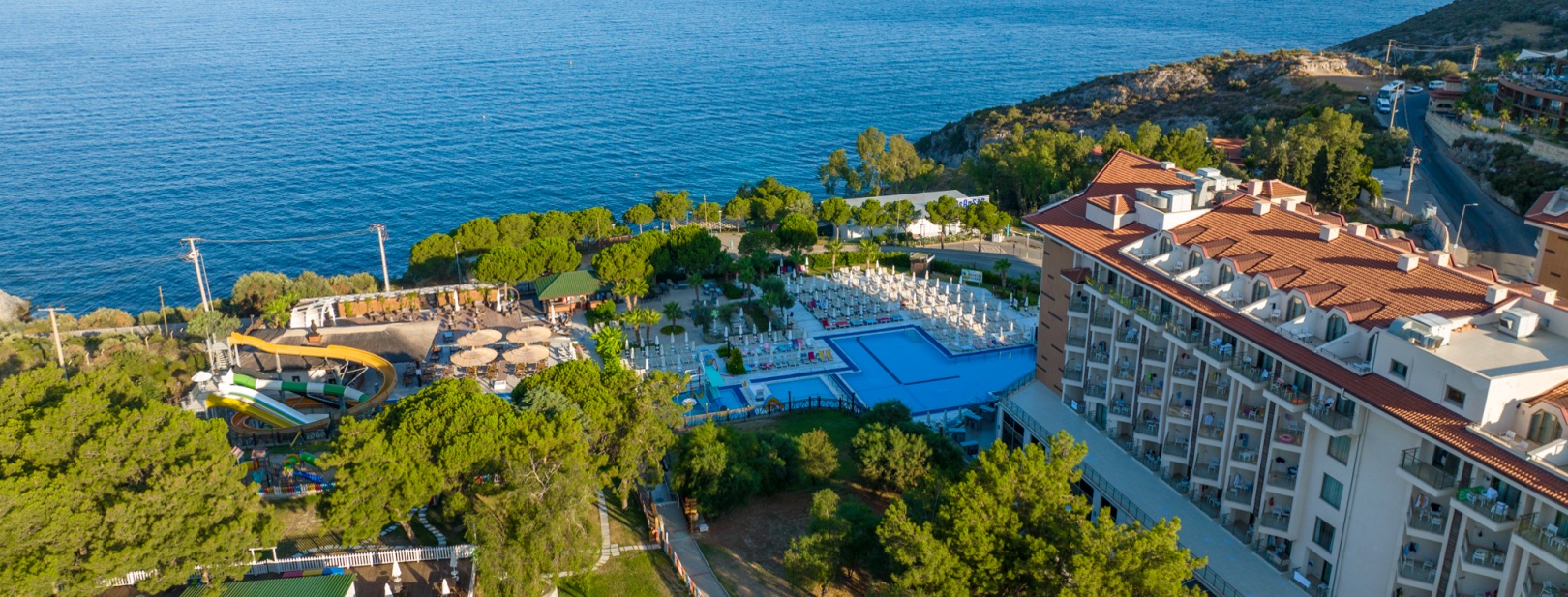 Votre hôtel Le Ramada Resort by Wyndham Kusadasi & Golf 5* a été ouvert en 2015, est un magnifique complexe à l’architecture moderne et s’étendant sur une superficie de près de 23 000 m². Tout est mis en œuvre pour vous permettre de vivre des vacances de détente et d’apaisement. Une plage privée est située à 2,5 km avec un service de navette gratuite pour s’y rendre. À votre disposition : Réception 24h/24, room service 24h/24*, blanchisserie*, location de voitures*, médecin*, boutiques*, salon de beauté*, salle de conférence*, transats et parasols, serviettes de plage, navette gratuite pour la plage (à partir du 01/05 au 31/10), parking, wifi gratuit.*Avec supplément Votre chambre Pour rendre votre séjour agréable, vous serez logé en chambre supérieure d’environ 34 m², disposant toutes d’un grand lit ou deux lits simples. La capacité maximale d'accueil en chambre est de 2 adultes + 1 enfant ou 3 adultes. La chambre dispose des équipements suivants : balcon, air conditionné, ligne de téléphone directe*, TV LCD, coffre-fort*, mini bar (approvisionné en boissons non alcoolisées le jour de l’arrivée), sèche-cheveux, salle de bains, chaussons, wifi gratuit, thé/café, 2 petites bouteilles d’eau par jour.*Avec supplémentDans le cadre d'une chambre à usage triple ou quadruple, vous serez logé en chambre double équipée d'un lit double (ou de 2 lits twins) et de 1 ou 2 lits d'appoint (sofa, canapé lit). Restaurants et bars Pour un séjour sans soucis, vous bénéficierez de la formule ultra tout inclus, qui comprend aussi bien les repas, boissons locales et snacks. Les repas seront servis sous forme de buffet, au restaurant principal de l’hôtel ou vous pourrez déguster de délicieuses spécialités locales et internationales.Votre formule tout ultra inclus comprend : Petit-déjeuner : de 7h00 à 10h00Petit déjeuner tardif : de 10h00 à 11h00Déjeuner : de 12h30 à 14h00Snack : de 11h00 à 17h00Dîner : de 19h30 à 21h00Snack de nuit : de 23h00 à 06h00 L’hôtel possède également 3 restaurants à la carte (sur réservation et à partir du 01/04, gratuit une fois par séjour) de 19h00 à 22h00 :Gusto (cuisine italienne)Ege (cuisine turque)Sunset (cuisine à base de poissons)À votre disposition également pour vous rafraîchir 4 bars :Royal Lobby Bar : 24h/24Relax Bar : de 10h00 à 18h00London Bar : de 10h00 à minuit Beach Bar : de 10h00 à 18h00À noter que la formule ultra tout inclus comprend les boissons 24h/24. Les horaires sont donnés à titre indicatif et peuvent être soumis à modification sans préavis. Les jus de fruits frais, certaines boissons importées, certains cocktails mais aussi les boissons en bouteilles ne sont pas compris. Vos activités et loisirs Pour le plus grand bonheur des petits comme des grands, pas moins de 6 piscines seront à votre disposition ainsi qu’un parc aquatique de 60m² pour les enfants. Une animation en journée et différentes activités vous seront également proposées parmi lesquelles : terrain de tennis (éclairage et leçons en supplément), tennis de table, aquagym, aérobic, centre de fitness, fléchettes, backgammon, salle d’arcades*, billard*, spa (sauna, hammam, massages* et soins*), sports nautiques*, karaoké, spectacles.Pour les enfants : Un mini club est disponible pour les enfants âgés de 4 à 12 ans de 10h00 à 12h30 et de 14h30 à 17h00 et de 19h00 à 23h00. À leur disposition : aire de jeux, trampoline, mini disco.Les amateurs de golf ne seront également pas en reste. L’un des plus grands parcours 18 trous de la région se situe en effet à 15 kilomètres environ de l’hôtel, ce dernier vous proposera un service de transfert et des packages adaptés**Avec supplémentÀ noter qu’au vu de la météo, certains équipements extérieurs peuvent ne pas être praticables et certaines activités annulées. Les activités, sports et soirées sont encadrées par une équipe d’animation internationale. Locate Situation L’hôtel se trouve à 1 km du centre-ville de Kusadasi et à 70 km de l’aéroport d’Izmir.