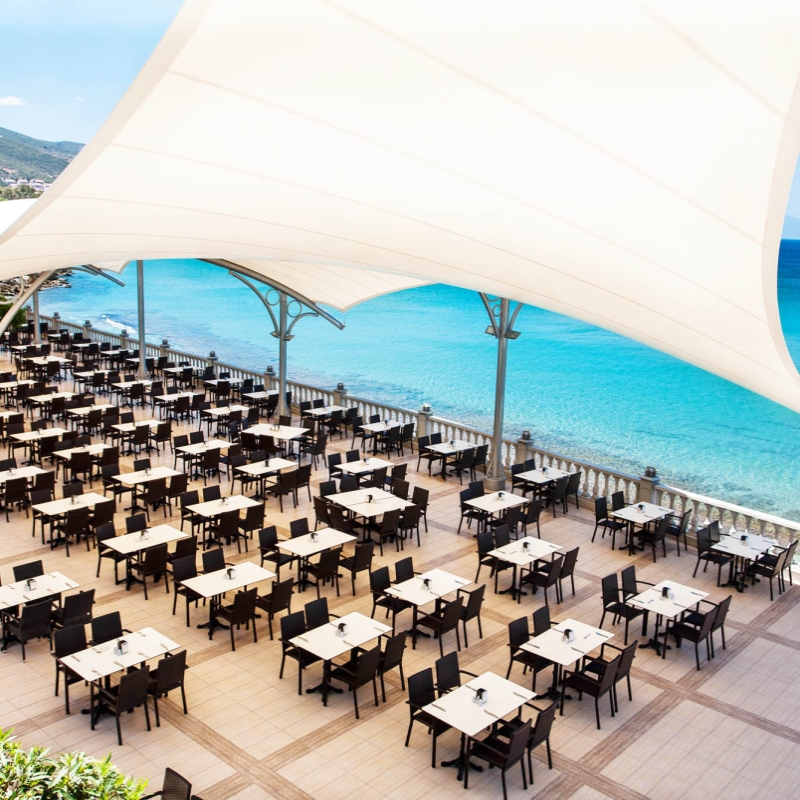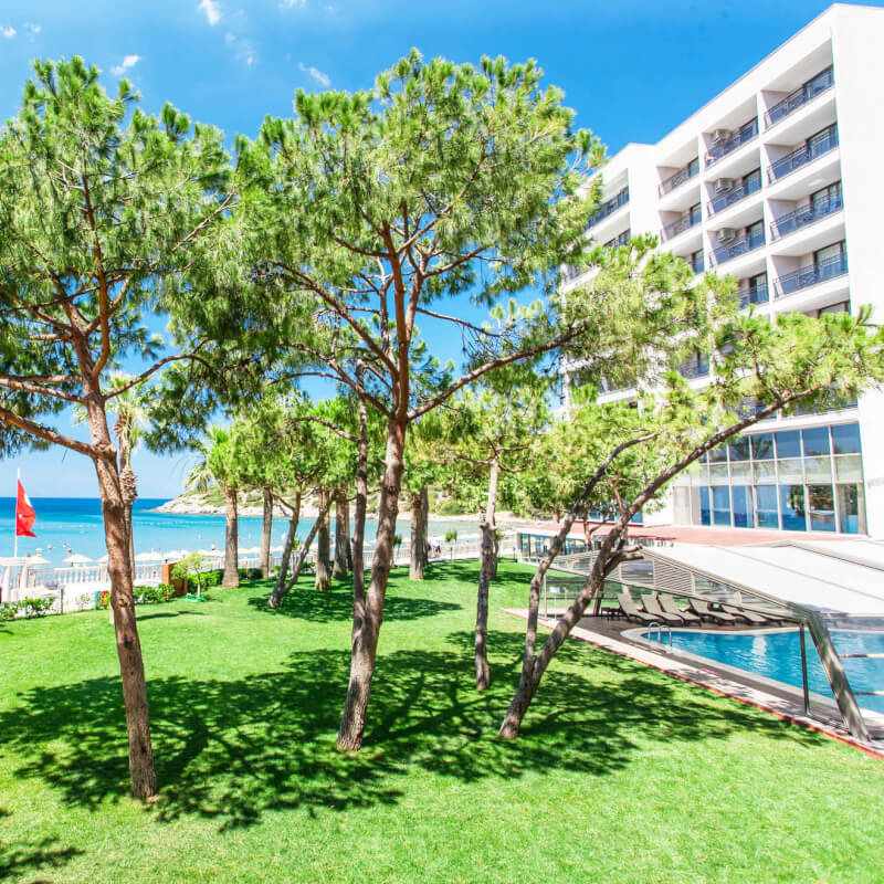 Votre hôtel L’hôtel Tusan Beach Resort 5* dispose d’un total de 377 chambres et se trouve sur la plage de Tusan offrant une vue panoramique sur la baie. La plage privée est située en face de l’hôtel. À votre disposition : Réception 24h/24, room service*, blanchisserie*, médecin*, coiffeur*, boutiques*, photographe*, salle de conférence*, transats et parasols, serviettes de plage (avec caution), wifi gratuit.*Avec supplémentLes animaux ne sont pas admis dans l’hôtel. Votre chambre Pour un séjour empreint de sérénité, vous serez logé en chambre deluxe vue jardin de 28m². La capacité maximale d’accueil en chambre est de 2 adultes et 2 enfants ou 3 adultes + 1 enfant. Les chambres sont toutes équipées de : balcon, climatisation centralisée, minibar (recharger en eau gratuitement tous les jours), coffre-fort*, télévision LCD, téléphone ligne directe, salle de bains avec douche, WC et sèche-cheveux, nécessaire à thé/café, wifi.*Avec supplémentDans le cadre d'une chambre à usage triple ou quadruple, vous serez logé en chambre double équipée d'un lit double (ou de 2 lits twins) et de 1 ou 2 lits d'appoint (sofa, canapé lit). Restaurants et bars Séjournez l’esprit libre avec la formule tout inclus, qui comprend les repas servis sous forme de buffet au restaurant principal de l’hôtel où vous découvrirez des saveurs locales, internationales et ainsi que les boissons locales alcoolisées ou non et les snacks.Votre formule tout inclus comprend :Petit déjeuner : de 7h00 à 10h00Petit déjeuner tardif : de 10h00 à 11h00Snack : de 11h00 à 17h00Déjeuner : de 13h00 à 14h30Glaces : de 15h00 à 17h00Coffee time : de 17h00 à 18h00Dîner : de 19h00 à 21h30Buffet de nuit : de 21h30 à 07h00 Plusieurs restaurants à la carte seront à votre disposition de 19h00 à 22h00 sur réservation du 01/05 au 31/10 (gratuit une fois pour les séjours de 7 nuits minimum) :Teos restaurant (cuisine turque)Lykia restaurant (cuisine italienne et poissons)Plusieurs bars seront à votre disposition pour vous rafraichir du 01/05 au 31/10 :Aspendos bar : de 09h00 à minuit Perge café : de 10h00 à 18h00Troy terrace bar : de 10h00 à minuit Lobby Cafe 24 : de 21h30 à 07h00Lykia club bar*: de 23h00 à 02h00*Avec supplémentÀ noter que la formule tout inclus comprend les boissons de 09h00 à 07h00. Les horaires sont donnés à titre indicatif et peuvent être soumis à modification sans préavis. Les jus de fruits frais, les boissons importées, certains cocktails mais aussi les boissons en bouteille ne sont pas compris. En avril, seul le petit-déjeuner, le déjeuner, le dîner et le “coffee time” sont proposés dans les services de restauration.Pour les services de boissons, seul le Troy Bar est ouvert durant le mois d’avril. Vos activités et loisirs Une équipe d’animation internationale vous proposera des activités soft en journée (6 jours/ semaines, à partir du 01/05) ainsi que des spectacles en soirée. À votre disposition : plage privée, trois piscines extérieures (de 08h00 à 20h00), jeux piscine, volleyball, basketball, water-polo, terrain de tennis (éclairage*), tennis de table, canoë, fléchettes, badminton, pétanque, aérobics, espace extérieur de fitness, plongée*, sports nautiques*, live music, mini disco.L’hôtel dispose également d’un centre de spa* (+16) avec les équipements suivants : sauna, bain turc, chambre à vapeur, massages et soins.*Avec supplémentPour Les enfants : un mini-club international sera à votre disposition pour les enfants de 4 à 12 ans, de 10h00 à 12h00 et de 14h00 à 16h00 (fermé les lundis). Au programme : aire de jeux, toboggans, coloriage, dessin animé, danse…À noter qu’au vu de la météo, certains équipements extérieurs peuvent ne pas être praticables et certaines activités annulées. Les activités, les sports et les soirées sont encadrés par une équipe d’animation internationale. Toute l’animation sera à partir du 01/05 : la piscine avec toboggan pour enfants, le mini-club, les sports nautiques. Locate Situation L’hôtel est situé à 5km du centre de Kusadasi et à 60km de l’aéroport international d’Izmir.